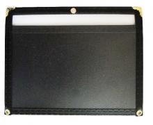 4-7/8" x 6-7/8" Black License Holder with clear plastic window to display ownership certificates. This also features tipped corners and mounting eyelets.