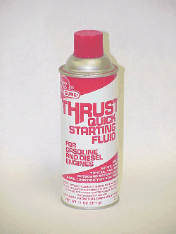 Thrust Starting Fluid For use on hard starting engines. Spray directly into Carb or air cleaner. Ether compound to be used with caution. Highly flammable mixture.