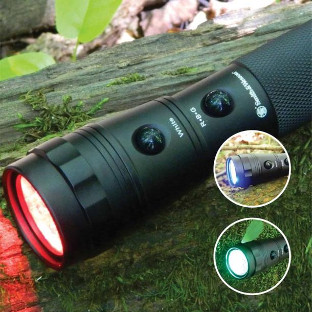 The Smith & Wesson Galaxy 12 LED Flashlight is highly durable and functional in any situation. Its 6.25 inches long and weighs only 7.6 ounces. This flashlight illuminates up to 15 lumens in its full-size design. This flashlight also features a patented dual switch system for quick and easy selection of red/blue/green or white light. It also includes a holster and lanyard. Black Matte Aluminum. Includes 3 (AAA) batteries and deluxe nylon holster with extra battery storage.