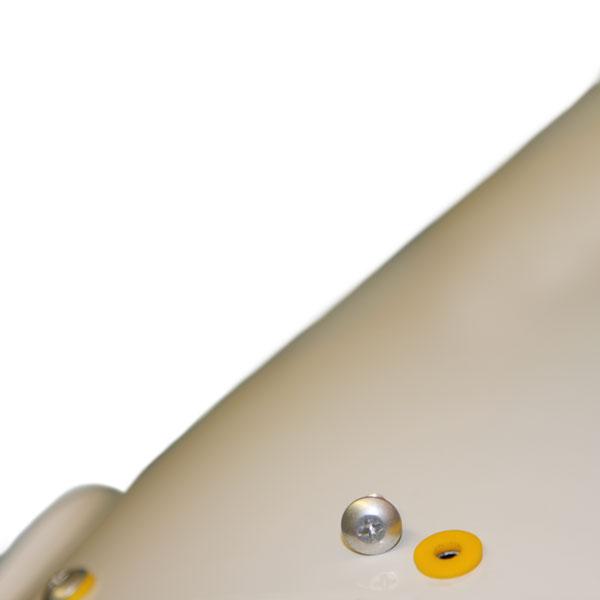 - Instead of nylon, these washers are machined from an extruded billet of a new, very tough polymer material – the toughest we make – so they won’t crack or extrude. The washers easily conform to the spinner’s curved surface and will serve without replacement for a very long time. In fact, they may never need replacement!
