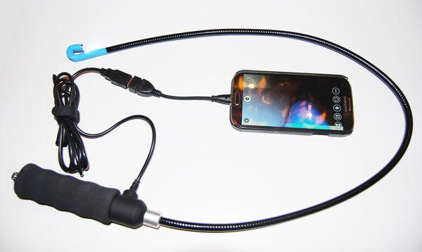 Connecting this borescope to your computer or tablet (optional, sold separately, click for details) via USB port allows you to perform detailed visual inspection in hard-to-reach areas. With the use of OTG cable (included in the package), this USB borescope can also be connected to an Android Smart Phones (such as Samsung). AbleScope.apk is a special APP to users who want to connect the USB Microscope and USB Borescope to the Android Smart Phones without rooting. 180 degree articulating 8.5mm diameter probe offers a panoramic view of the area being inspected. With 0.3M pixels CMOS sensor, and six built-in LEDs for illumination, this product allows you to view images, take standard photos, and record videos. This borescope is designed for the inspection of the carbon residue inside of cylinder especially the surface of the intake valve. It is perfect for 'looking backside' after the scope goes into a narrow space.