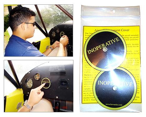 The instrument cover is a plastic disk approximately 2 3/4” in diameter and 1/16” thick. By use of the attached suction cup, the cover will mask the face of most general aviation flight instruments. It is useful in many training situations one of which is partial panel work. As a safety aid, the cover can be used to mask an instrument when it is non-functional, as is required by Regulations. Each package has two covers.