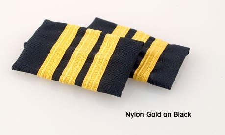 Epaulets are available with a Black or Navy base and Metallic Gold, Metallic Silver, Nylon Gold, Nylon Silver, or Nylon White stripes. Price per pair.