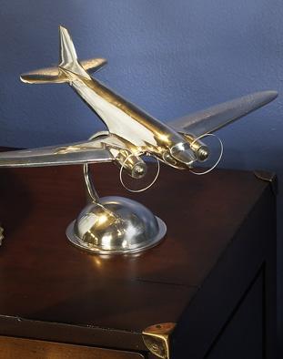 The DC-3 has earned the epithet "Workhorse of the Skies". Thousands were produced from the end of WWII into the 1950s by the Douglas Aircraft works. Military, civilian, government, private, you name it. Utterly reliable. Even now it's possible to find them flying from remote airports, landing on the tightest strips. Legendary and nostalgic. Aluminum, riveted propellers, noisy, but also safe and familiar. M. 27 x 36 x 17.5cm, 10.5 x 14.2 x 7"