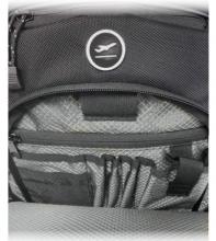 Rear compartment - Airport check-point friendly EFB/Laptop/iPad protection pouch (just unzip bag and fold open, computer stays inside), document storage.