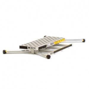 - The 4-Step has a hinged leg that reduces the length of the XDeck when it is folded flat