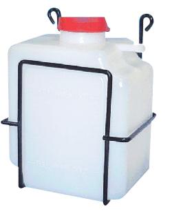 This white plastic tank and steel rack holder is ideal for coolant recovery. Translucent white color easily shows fluid level.Wire mounting cage cradles tank securely, while offering a wide range of mounting options. See through feature allows fluid level to be seen easily. Can also be used as an oil injection reservoir. Side port accepts 3.8” i.d. tubing.