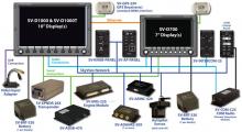 Very bright, high-resolution screens driven by advanced graphic processors create highly visible and readable displays. Screen resolutions are 1024x600 for the SV-D1000 10 and 800x480 for the SV-D700 7. Brightness is over 1350 nits for the 10 display and 1200 nits for the 7 display. Displays are fully dimmable for night flight. A wiring harness included with each display makes for easy connections between displays and modules.