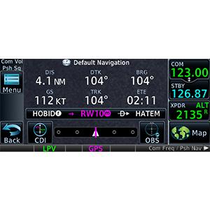 The robust 15-channel GPS receiver generates 5 position updates per second. This SBAS/WAAS-certified technology allows you to fly GPS-guided LPV glidepath instrument approaches down to as low as 200 ft. In addition, precise course deviation and roll steering outputs can be coupled to select autopilots so that IFR flight procedures may be flown automatically. This includes all ARINC 424 leg types, except RF legs. (For example, when coupled with a G500/G600 flight display, the aircraft can fly fully coupled missed approaches, including heading legs.)