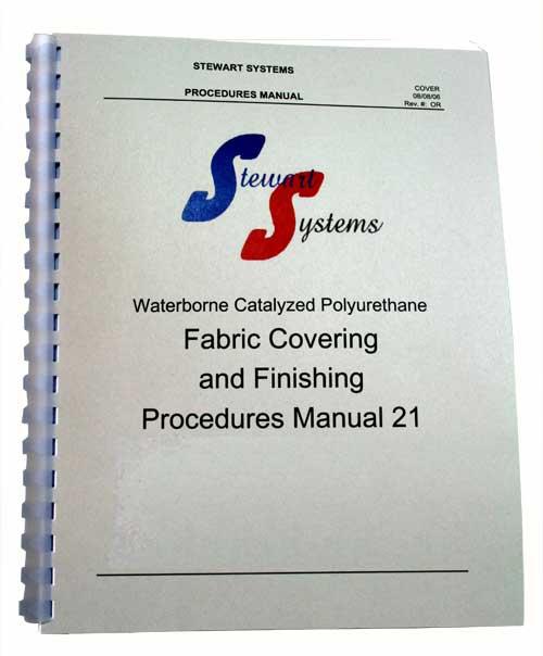 The Stewart Systems Procedures 21 Manual 3/23/09 edition is a complete written manual for the Stewart Systems Covering Process. It includes product application, painting instructions, continued airworthiness and more. This written manual is an excellent tool to keep in your shop while you are covering. The manual also contains many helpful hints for each step of the process.